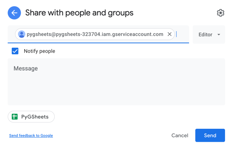 And add this to your google sheet, similar to how you’d share it with any other account.
