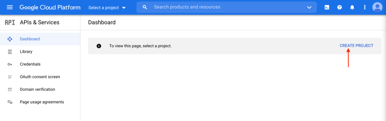 - Go to the google cloud console and create a new project.