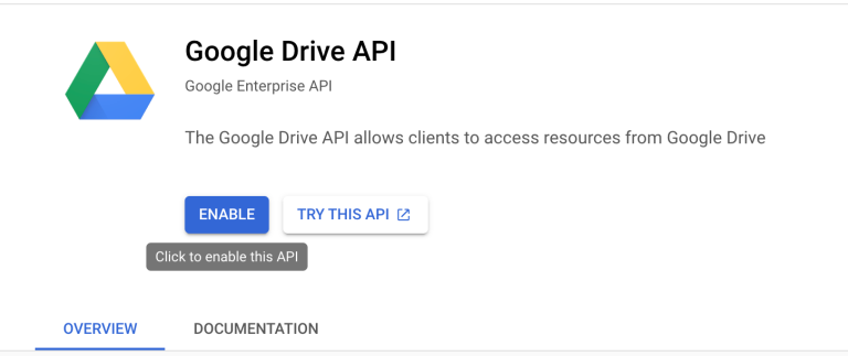 Similarly you can enable the Google Drive API