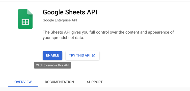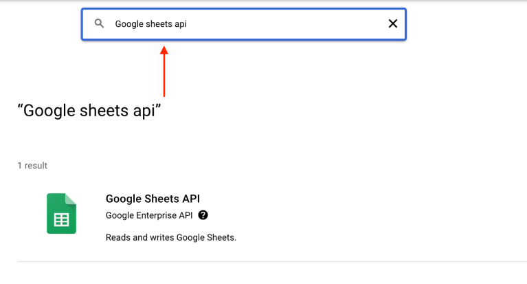 Then search for Google Sheets API
