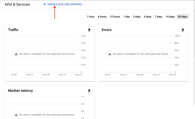 To Add Sheets API, First click on Enable APIs and Services on the Project Dashboard.