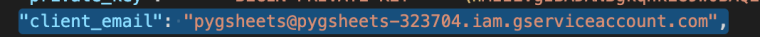 I’ll be renaming the downloaded json to “client_creds.json”. The last thing you’ll need to do is take the service worker account from this json, which will be in the key “client_email”,
